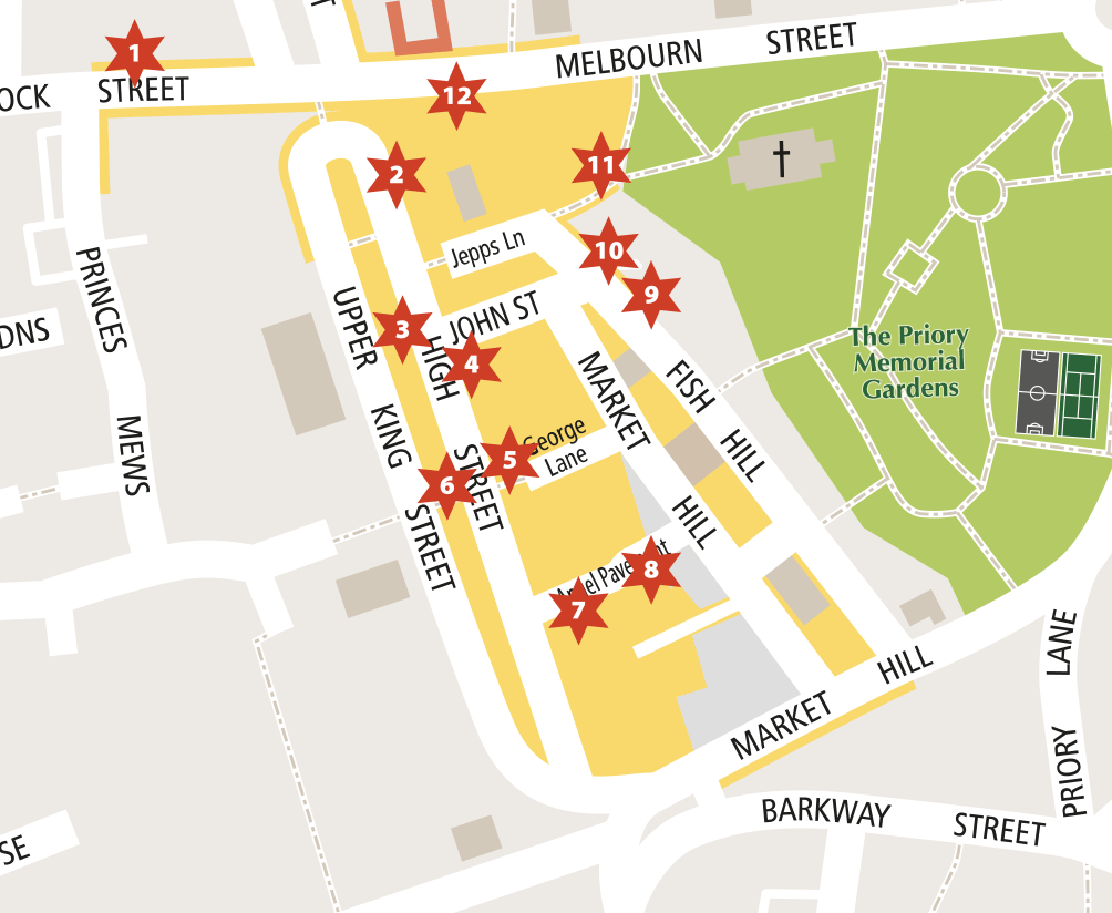 There is an elf at each of the starred locations on the Map. Can you find them in the shop front windows and work out what each one is up to? If you can, you’ll be in with a chance of winning a Christmas sweet hamper from Ladds of Royston!